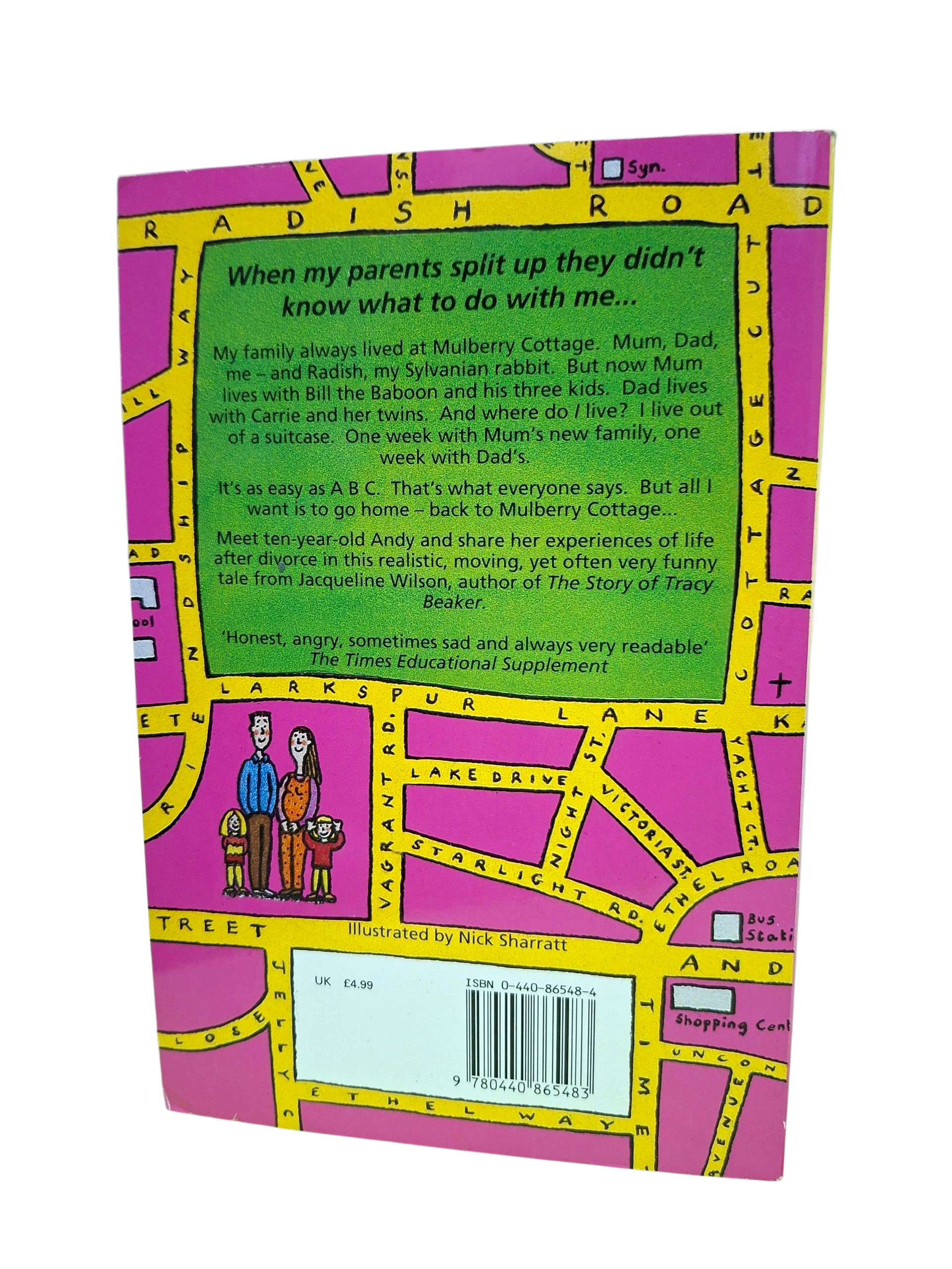 My family always lived at Mulberry Cottage. Mum, Dad me – and Radish, my Sylvanian rabbit. But now Mum lives with Bill the Baboon and his three kids. Dad lives with Carrie and her twins. And where do / live? 1 live out of a suitcase. One week with Mum’s new family, one week with Dad