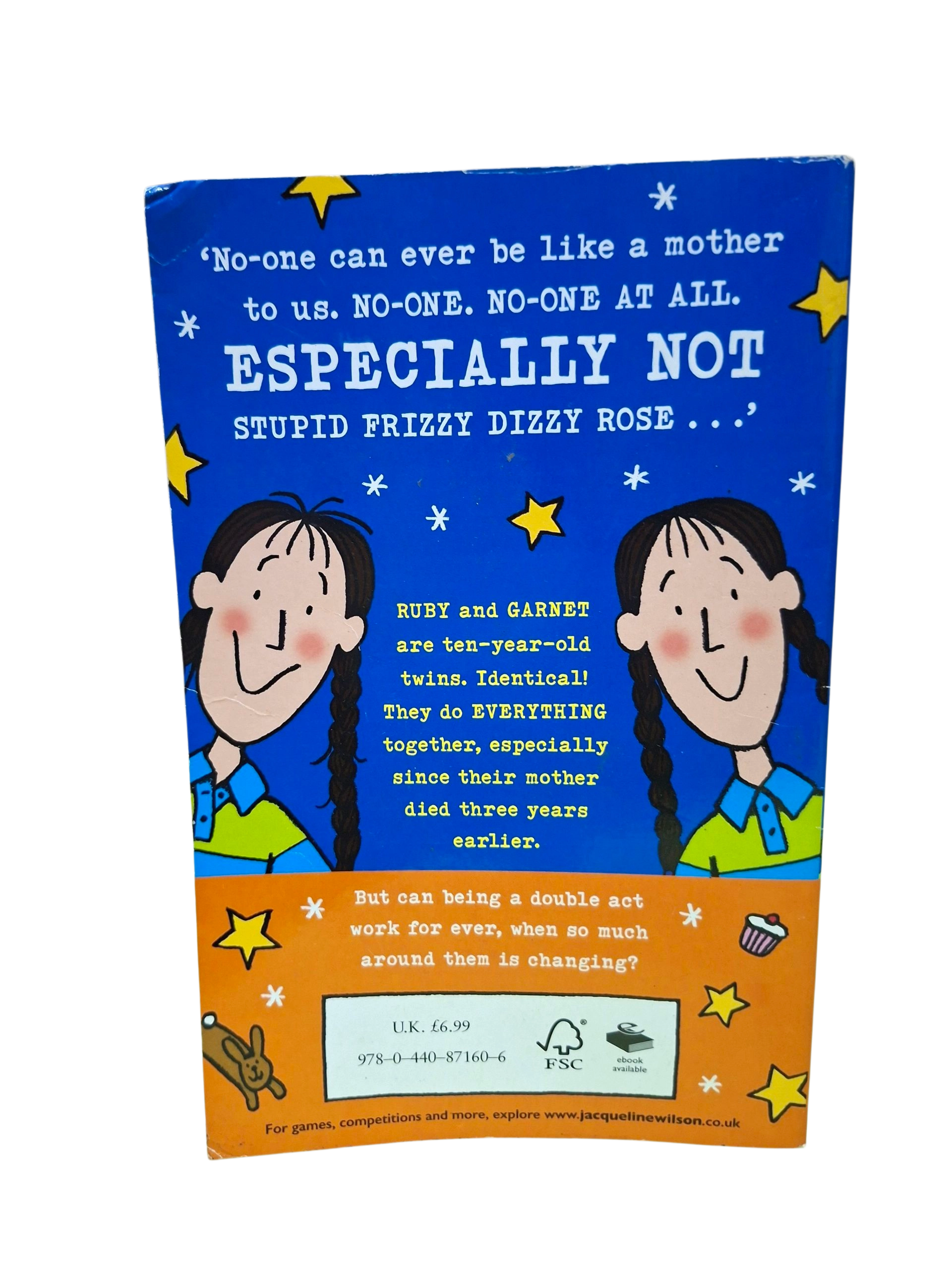 Double Act by Jacqueline Wilson is a warm and funny story about identical twins, Ruby and Garnet, who may look the same but couldn?t be more different. Ruby is bold, lively, and talkative, while Garnet is quiet, thoughtful, and shy. The girls are inseparable, especially after their mother?s death, but things start to change when their dad meets a new woman and decides to move them to a new town ? and a new school.