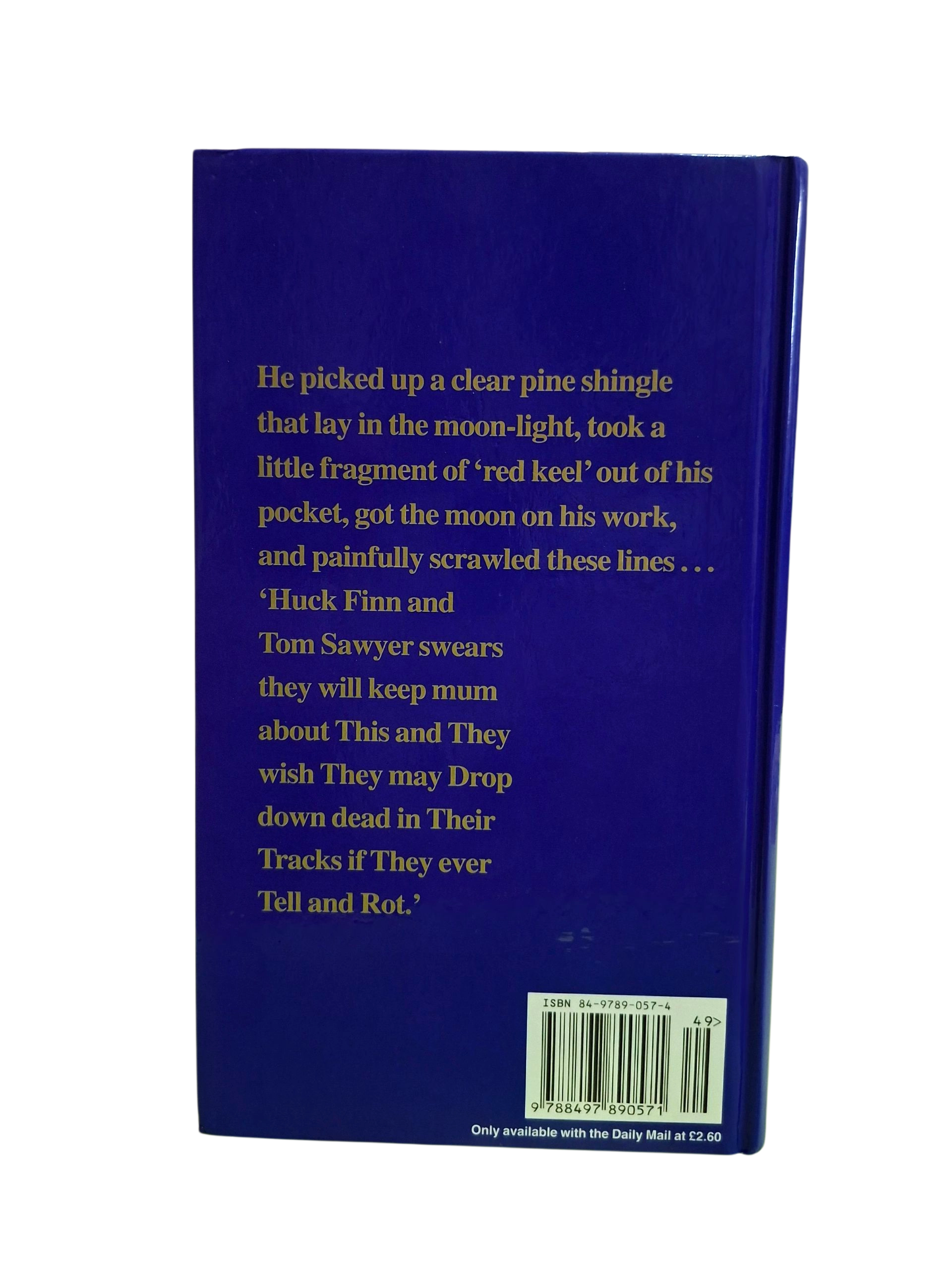 He picked up a clear pine shingle that lay in the moon-light, took a little fragment of red keel’ out of his pocket, got the moon on his work, and painfully scrawled these lines .. Huck Finn and Tom Sawyer swears they will keep mum about This and They wish They may Drop down dead in Their Tracks if They ever Tell and Rot.’